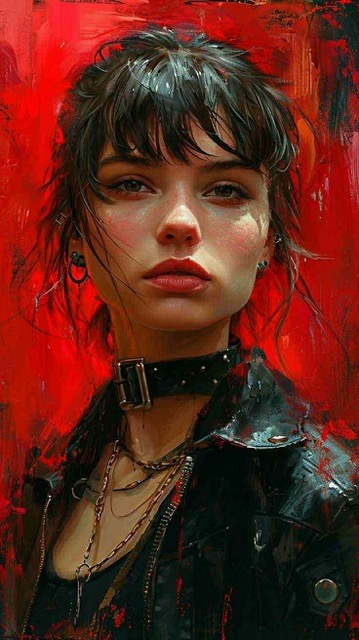 A figyelem központjában a tekintet drámai ereje és a háttér vibráló vöröse áll. Ebben a képben a színek nem mellékszereplők — a lélek mélységét, a belső erőt és a modern női karakter izzását közvetítik.
